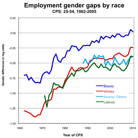 | Gender gap trends by race: |